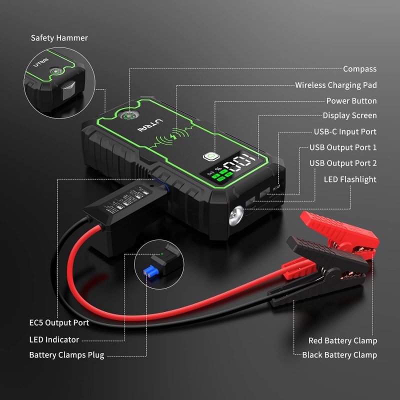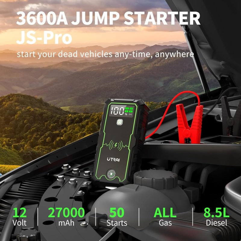 | UTRAI 1-Pro Jump Starter | UTRAI | 4.4 out of 5 stars | 3600A Peak 27000mAh | Wireless Charger, USB QC 3.0, LED Flashlight, Intelligent Protection | $79.99 |