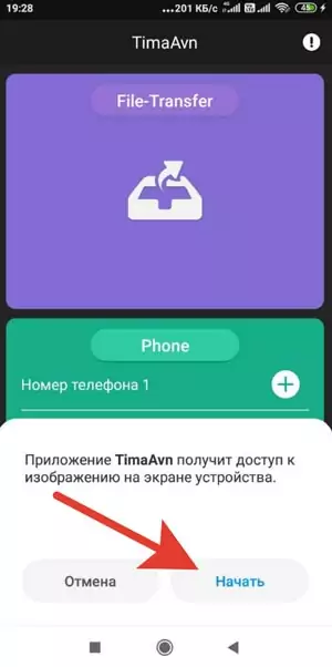 - После того, как на смартфоне появится диалоговое окно, нажмите начать.