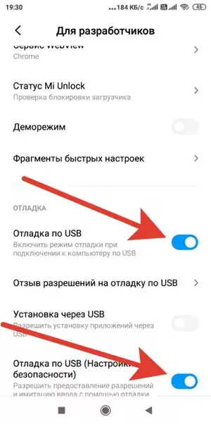 Перед подключением смартфона к магнитоле необходимо в настройках телефона зайти в режим разарботчика и включить опцию Отладка по USB, а также активировать пункт Отладка по USB (настройки безопасности) – это необходимо для управления телефоном через экран магнитолы. Данное действие проводится один раз.