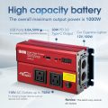- High-Performance Power Inverter: This efficient 1000w inverter delivers a reliable 500 watts of continuous DC 12Volt to AC 110Volt power, with a high peak power of 1000 watts. It is perfect for powering a wide range of devices including string lights, laptops, game consoles, and other electronic gadgets through its dual AC outlets and two fast-charging USB ports.