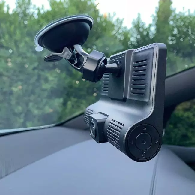- Салонная камера (записывает все, происходящее в салоне машины), обладает углом обзора 100° и качеством записи 720P при 30 кадрах в секунду (FPS).