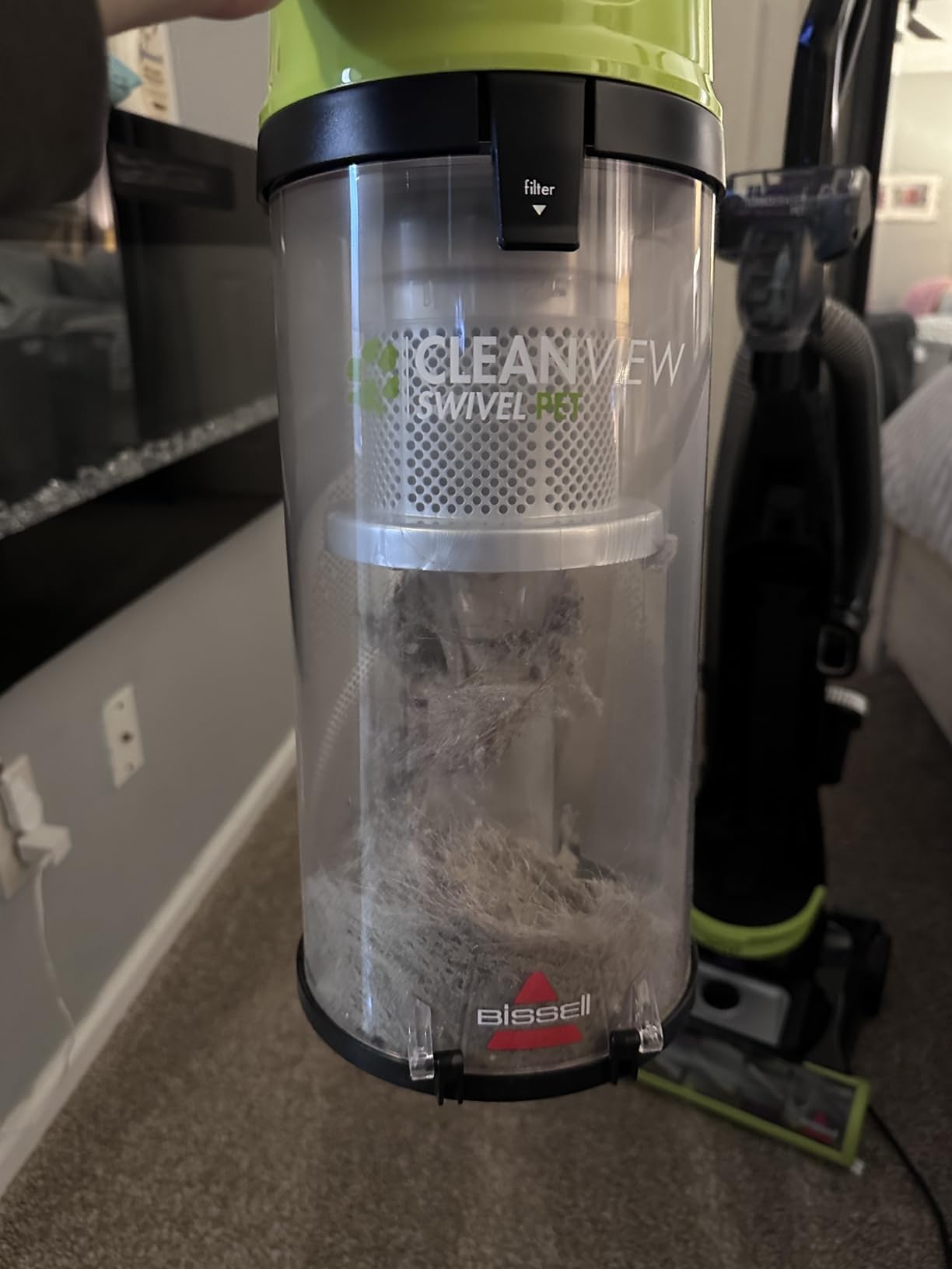 Let me start off by saying I have a Dyson. It’s not broke.. I just haven’t been happy with it since I got it. I vacuumed my bedroom thoroughly with the Dyson, then again with the Bissell and the picture is how much it missed. The suction on these is much better. Naturally, I got excited and used it on the stairs with the hose and that bad boy packs a powerful punch. Almost dangerous. Almost. That was huge since my Dysons hose was too straight. I could only use it for high places. I read other reviews saying you have to clean the hair out of the belt area…. I didn’t mind this. My daughter and I have thick long hair and we also have a dog who sheds like crazy. I’m used to this. I’ve had to do it with every vacuum. Great price. Excellent find.