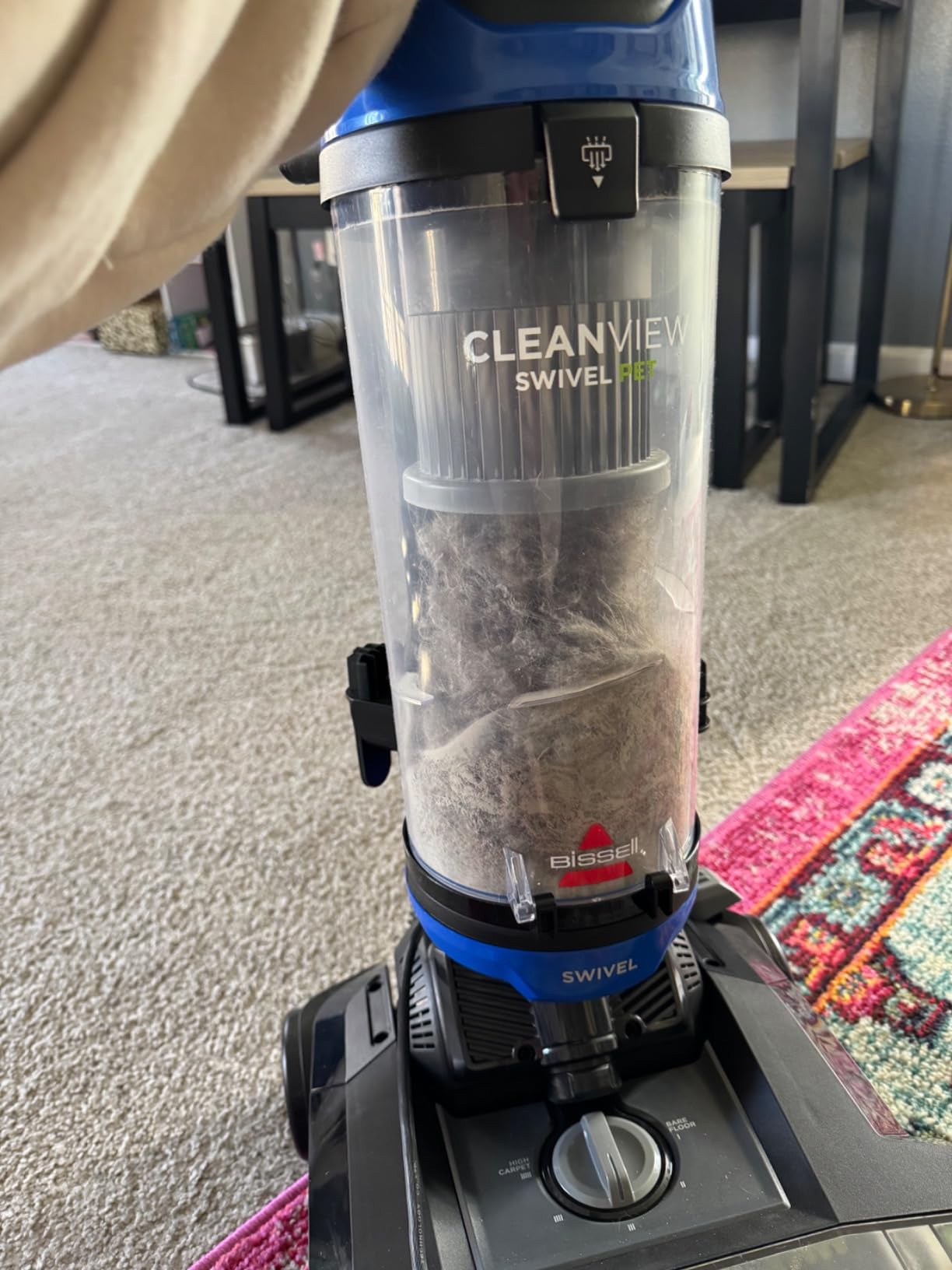 I can’t really complain about this vacuum. It picks up my dog’s hair and a ton of dust I didn’t even know was hiding in my carpets. In hindsight, I do wish I had gotten the liftoff model so I could easily use it to clean my car seats, but this vacuum is great nonetheless.