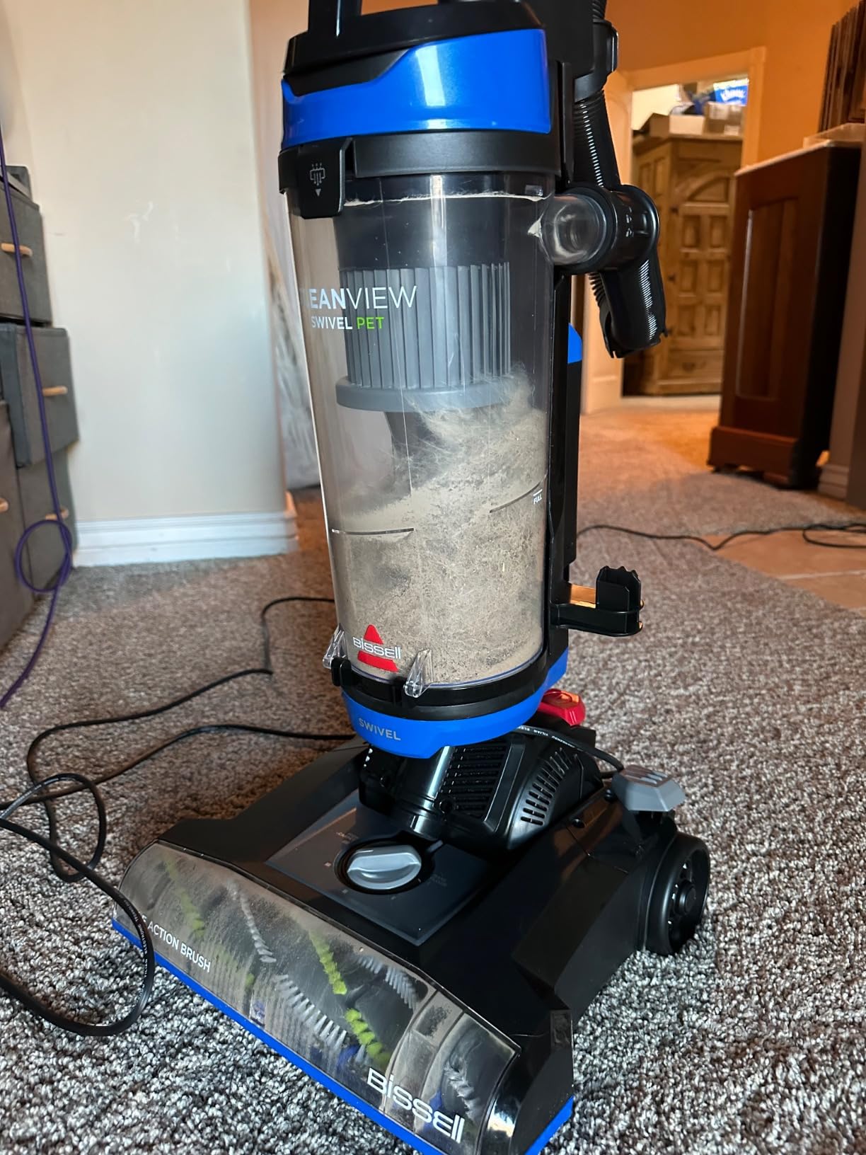 This vacuum truly made me realize how gross my house has been. I previously had a shark pet vacuum, one of the super skinny/small ones. I felt it wasn’t cleaning as effectively as it could be, so I bought this one. I vacuumed my whole house (high pile carpets) with the shark. Then I went through with this Bissell vacuum immediately after. The picture attached is what came out of that. All of this after I already vacuumed with the Shark… yikes. This vacuum works great, is super lightweight and easy to haul up and down the stairs. It’s pretty compact compared to some other traditional/full size vacuums, which makes it easy to store. I appreciate that it has foot pedals to turn to it on and unlock. The only “complaint” I have (and it is SO minor) is the location of the dial to adjust the vacuum height (bare floors, carpet, high pile) being so low to the ground. Would be much easier to transition between settings if there was an adjustment near the handle. That being said, I honestly barely adjust it and just keep it on setting 2 and it works transitioning between carpet, rugs, and tile