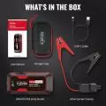 Unbox the thoughtfully designed case which includes the jump starter, jumper cables, and versatile USB charging cables, making it ready for your next road adventure.