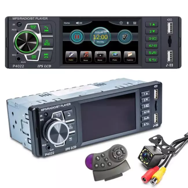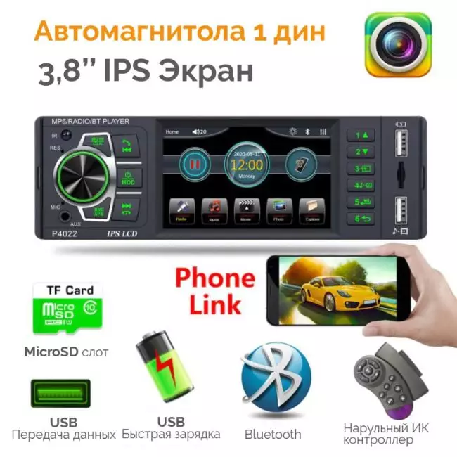 Универсальная автомагнитола подходит для автомобилей с разъемом типоразмера 1 дин (180 мм по ширине на 50 мм по высоте). Магнитола оснащена 3,8 дюймовым IPS экраном (не сенсорный).