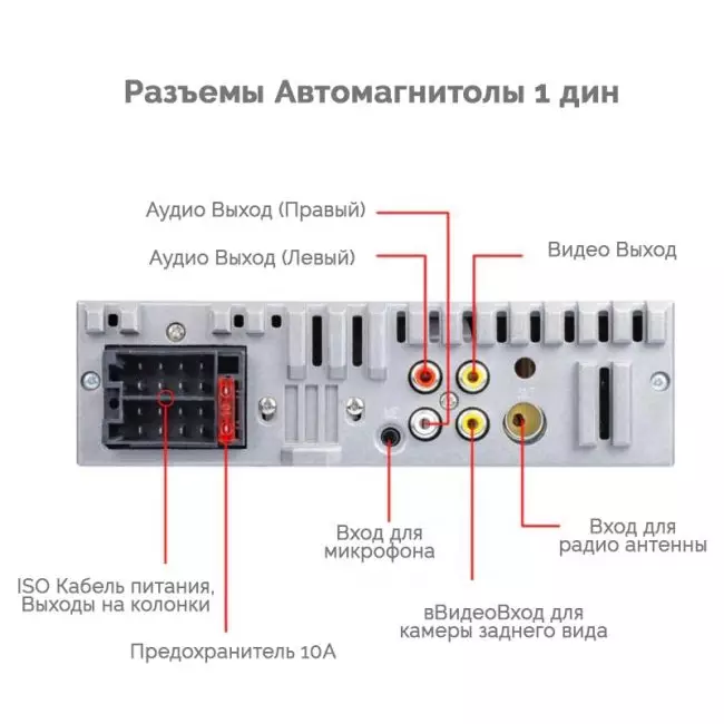 Автомагнитола 1 din оснащена универсальным разъемом питания ISO