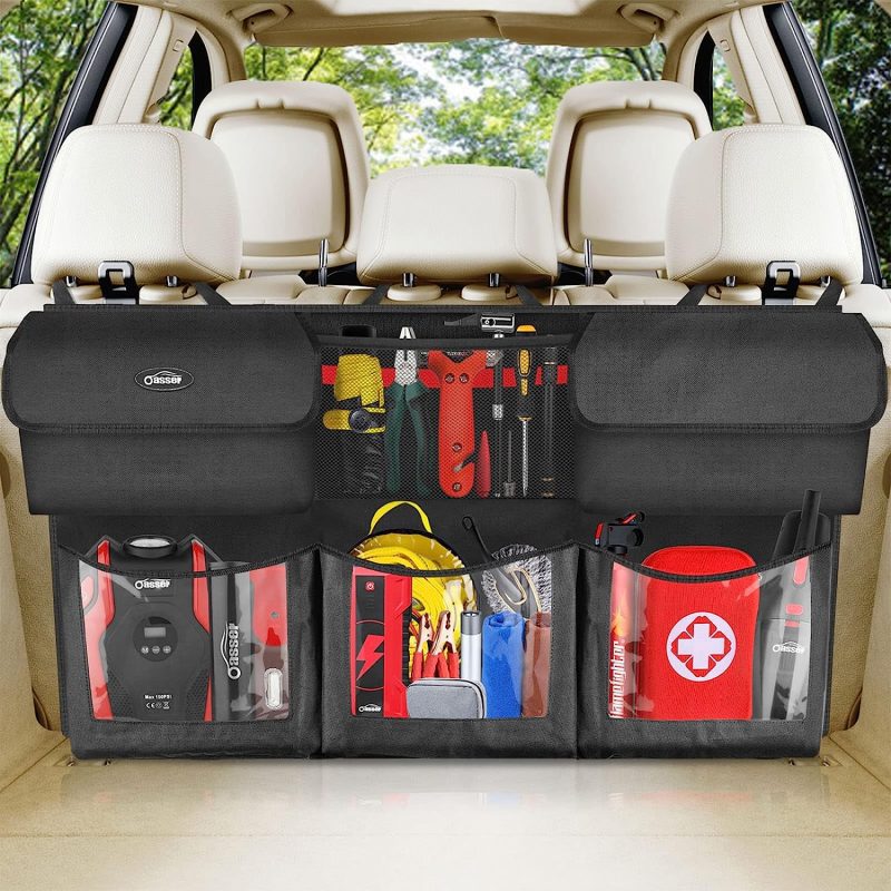 Oasser Car Storage Organizer New Version, Hanging Trunk Organizer with 10 Different Functional Storage Bags, Car Trunk Organizer for SUV Truck MPV VAN