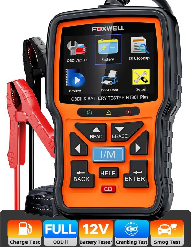 The battery tester feature in the FOXWELL NT301 Plus OBD2 Scanner is essential in assessing the health and performance of your car’s battery. It can check if the generator provides sufficient power to the vehicle’s electrical system and if the battery can hold the charge. The battery tester can help prevent potential battery issues and extend the battery’s lifespan.