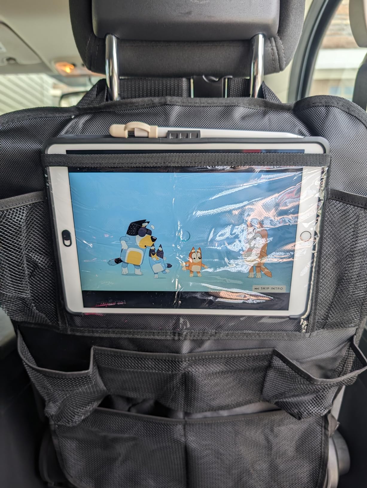 The design is great, but the fact that I bought it for the specific fact of holding the IPad for my son, and it didn’t fit…… ugh! It does seem very well built and would be great value for the money, but just not for me. It is very versatile with all the pockets and sits well on the back of the seat. Very stable! If you have a small ipad or tablet, it is a great buy.