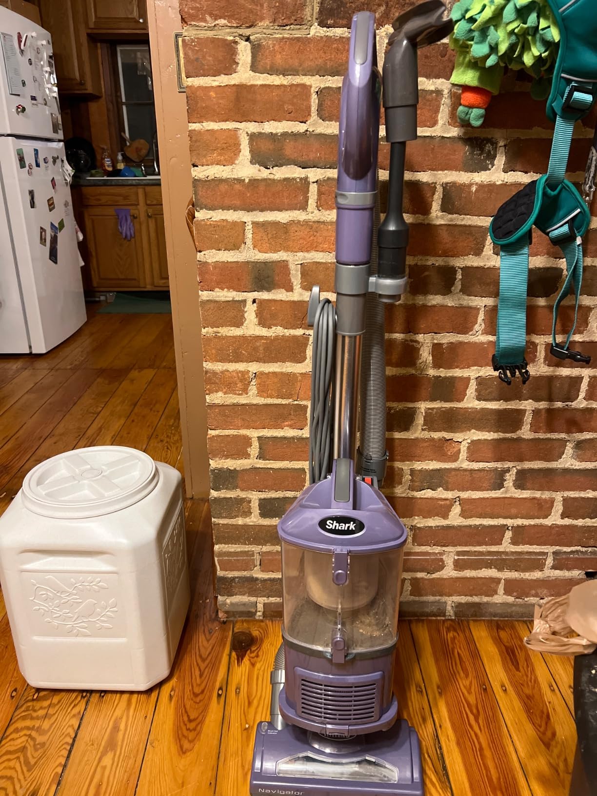 Cannot believe how much dirt this little vacuum sucks up! We have six large dogs in the house, and the Shark isn’t fazed at all. It’s also easy to carry and very maneuverable. One criticism is the upholstery brush – it’s at a weird angle and doesn’t work well – but on the plus side it transformed the color of the carpet in the walk-in closet! All other floors in our house are hardwood and it does a great job on those.