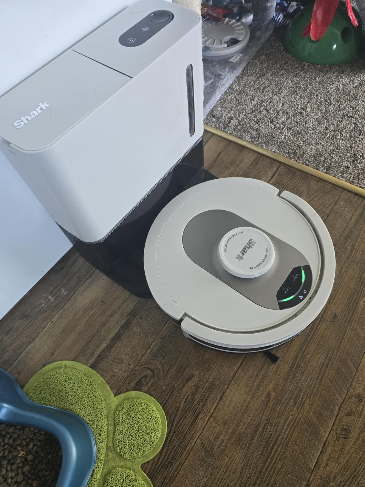 The media could not be loaded. Let me tell your about Sharkira I got it on sale so it was definitely worth the price. It was very easy to setup. All the instructions came on peel off paper on the system. I have three hairy cats and significant other with really long hair. My last robot vacuum would bind up from it but not this one. So far no issues at all and it is picking it all up. I’m surprised it works so well because it is so quite. But it has no issues with suction at all. The app was really easy to use and setup. The docking station has quite a large capacity so you don’t have to pay attention to the unit for a long time