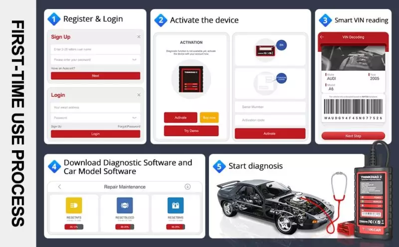 Auto Scan Car VIN Code Thinkdiag 2 can automatically scan the car’s information, include VIN number, release year, model and engine type.