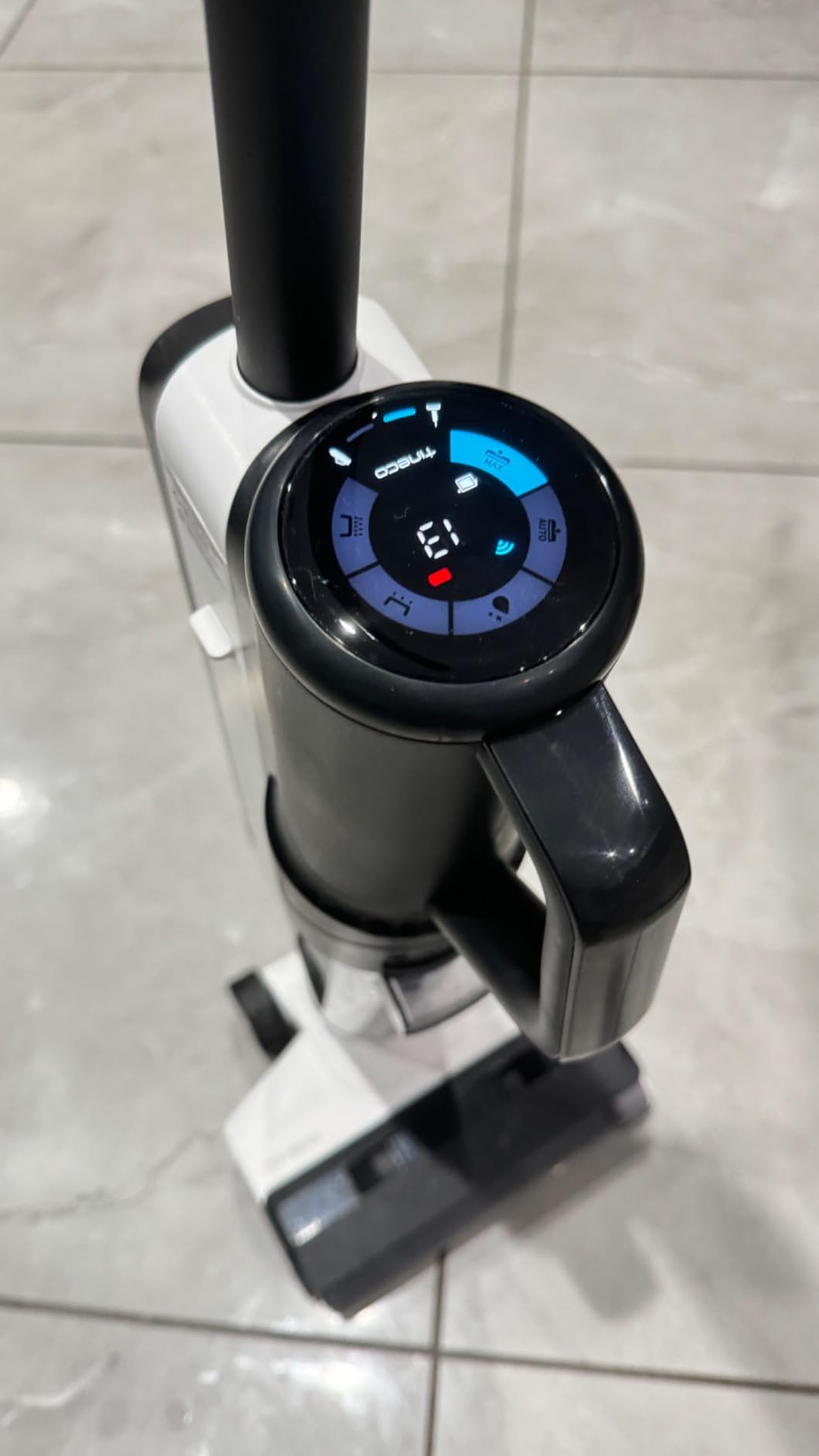 I had been eyeing this machine for years after seeing it on social media. I couldn’t pull the trigger because it is expensive and the reviews were a bit mixed. When I saw it for sale with a steep discount during Prime day, I finally committed and I am so glad I did. I am a busy mom of 4 who just doesn’t have time to mop everyday (or week unfortunately). We have tile in the kitchen and hardwood floors where we eat. The kitchen tiles were NEVER clean. I sometimes steamed them twice in a row and then used a regular mop and the floors still didn’t pass the “paper towel” test. Enter Tineco. As soon as I charged it for the first time I did my tiled floors. I did 2 rounds just because I wanted to give the machine a fair shot on floors that never seemed to get clean. Oh my gosh, for the first time EVER there was no residue on a paper towel when I wiped the floor. None whatsoever. I’ve seen complaints about the battery but I have a 3600 sq ft house. I bought the combo (more in that later) which I think has a shorter battery life than the regular Tineco — I can still do my whole first floor before the battery even gets to 30%. I did my entire kitchen, eat in area, living room, dining room, and the first floor bathroom tonight and it was at 40%. I did have to clean the dirty water tank once and add fresh water but I don’t mind. I bought the combo — I wish I would have bought just the regular one. I have yet to use the hand vac and I honestly don’t think I ever will. I can just use our regular vacuum if I need to get into tight crevices. That is my only regret with this machine. Cleaning is a breeze. I had an issue the first time running the self clean — it kept telling me to clean the dirty water tank even though it was clean. I ended up just manually starting the self clean function and it worked like a charm. This machine saves me so much time and now my floors are clean. It takes not even 5 minutes to clean the machine when I’m done (wash the dirty water tank, the roller, wipe down the machine, etc) and that’s because I really want to take care of the machine. You probably don’t need to be as diligent as I am. I did notice it leaves slight streaking on my darker hardwood floors (nothing on my light hardwood). It is minimal and doesnt bother me whatsoever. All in all, I love this machine and so far I don’t regret this purchase whatsoever. I hope this review helps someone who may be contemplating!