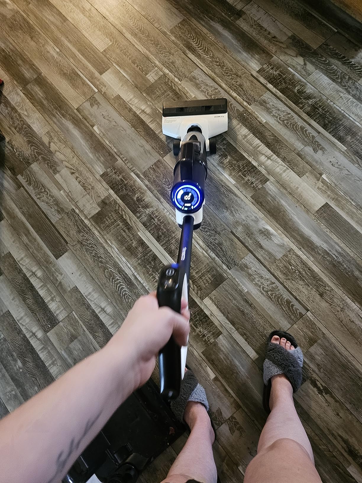 The media could not be loaded. Once we renovated our home with vinyl floors I refused to sweep and then mop after. Love this purchase. We don’t have a regular vacuum at all. The suction is good and I love how it turns into a hand held vacuum!