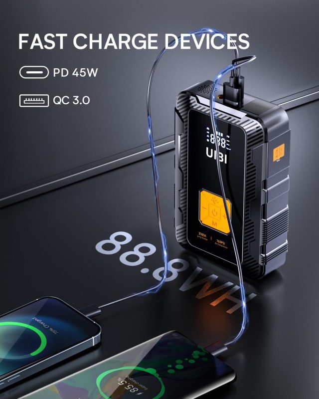 An air compressor jump starter is a true road trip hero, serving as a power station and battery booster in one compact package. It can kickstart your car, inflate tires or even charge electronics on the go. Plus, it’s a cost-effective solution that saves you from buying multiple tools. No more waiting for help when stranded – just plug and play.