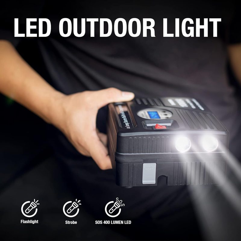 - Multifunctional capabilities as it serves not only as a jump starter but also as a power bank and LED flashlight