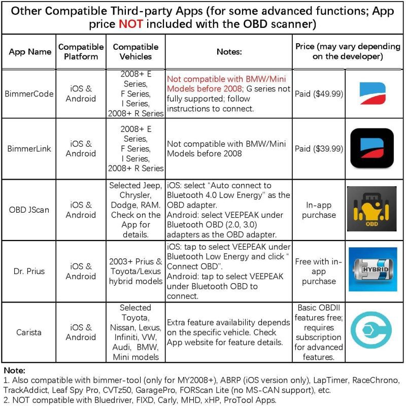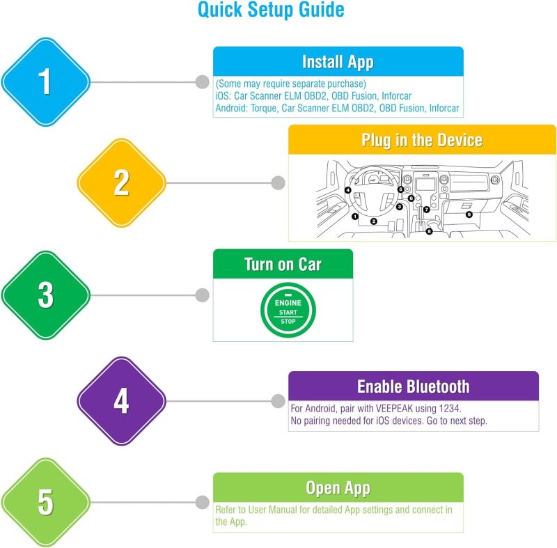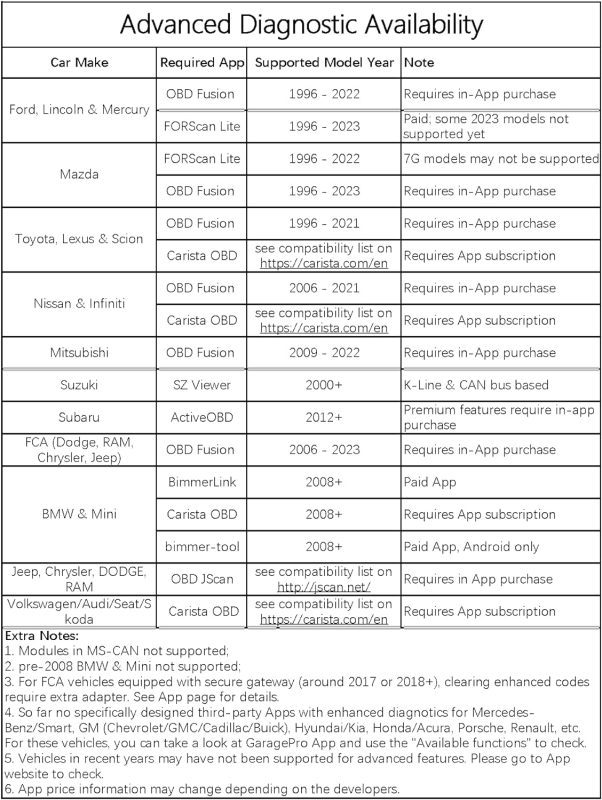 - Support for multiple diagnostic apps like Car Scanner, OBD Fusion, and Torque.
