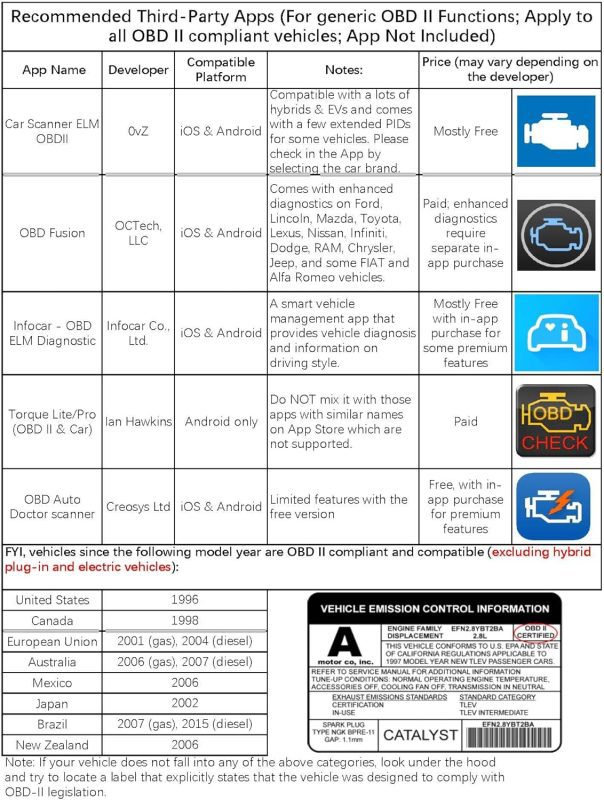 For vehicles outside US or EU regulations, OBD-II compliance can be confirmed by an under-the-hood label. Without this compliance, generic OBD-II scanners cannot be used. Therefore, it’s crucial to confirm your vehicle’s compliance before purchasing a scanner.